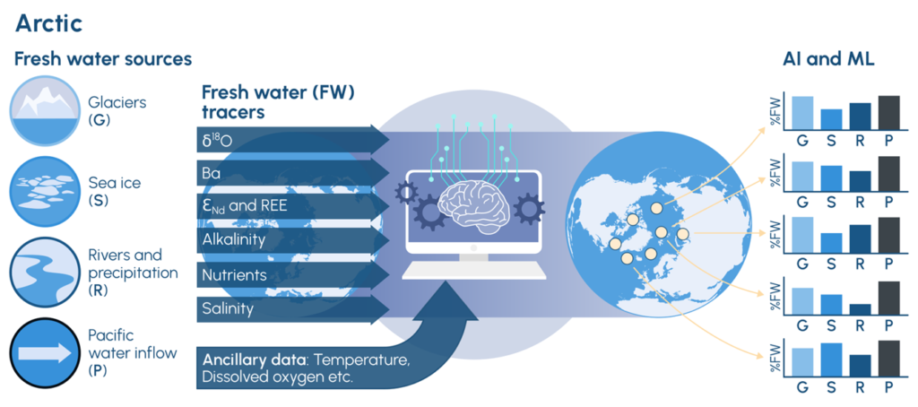One major application will be the interpolation of freshwater tracer data across space and time, allowing the identification of patterns and changes that are impossible to detect from individual measurements alone. This will deliver profound insights on the distribution and fate of freshwater in the Arctic Ocean.